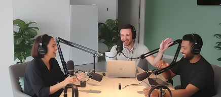 Sala equipada con todo lo necesario para grabar tu podcast.